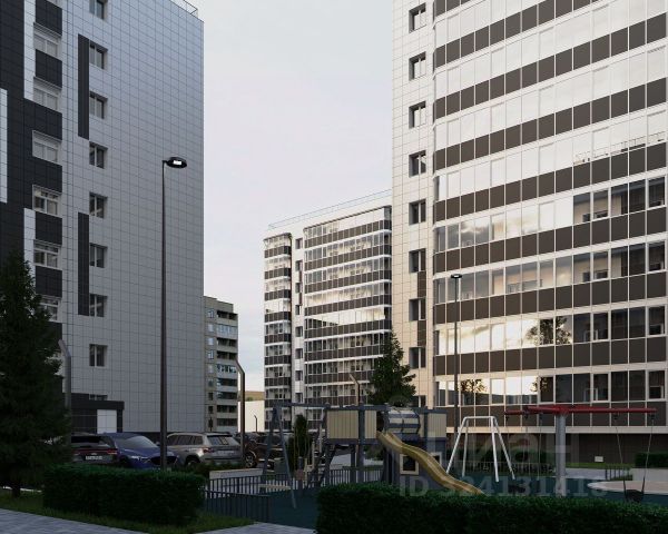 Во дворе детская площадка и школа, детский сад в соседнем дворе.