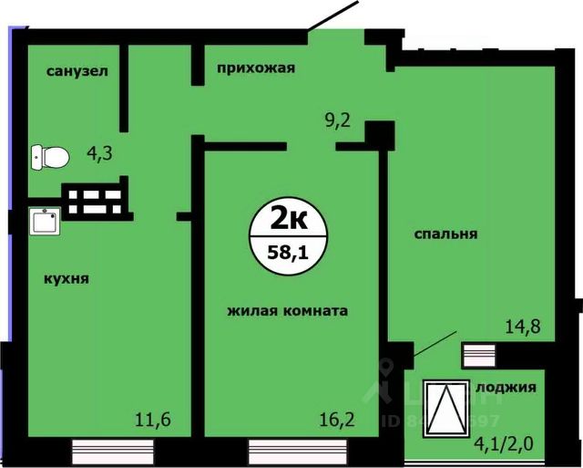 • ✅ Минимальная площадь: 58,2 м²