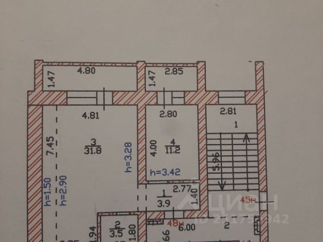 Общая площадь 42 кв. м..