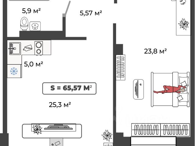 • ✅ Минимальная площадь: 65,4 м²