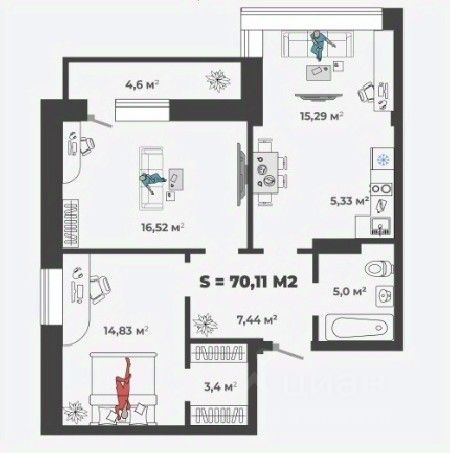 Федеральное агентство недвижимости Жилфонд предлагает Вашему вниманию просторную евро-трешку 93,2 кв.м ,2 больших балкона,2 гардеробные.Кухня гостиная 32 кв.м.,две просторные спальни 14кв.м ,15 кв.м.,