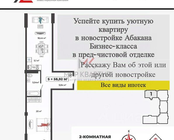 Квартира Бизнес-класса с окнами на две стороны и видом на дренажный канал. Евро3шка! Дом сдан в эксплуатацию. Находится в одном из лучших районов и ЖК города. Подходит под программамы: - семейная ипотека-6 %, ПВ -20,1% ( если есть дети до 18 лет/ ребенок рожденный после 2018 г/ребенок инвалид до 18 лет). Возможно это сделать и одному родителю (матери , отцу) не состоявшему в браке; -скидка от Застройщика - 1,4 % в ипотеку; - при ПВ 50,1 % - ставка на весь период ипотеки в силу закона -4,6 %; - рассрочка без процентов; -IT ипотеке и др. - за наличный расчет- скидка 10 % -5 % скидку участникам СВО. Хорошая шумоизоляция, современные планировки. Межкомнатные перегородки из кирпича, высокие панарамные окна в пол (теплый алюминий), полы с подогревом (регулируются). Индивидуальные счетчики на отопление, потолки высотой 3,2 м, чистовая отделка WHIT-BOX. Видеонаблюдение, система "умный дом", двор закрытый, с детской игровой и спортивной площадками. Парковка для автомобилей - подземная. Район с очень развитой инфраструктурой : - рядом школы 12,29, 31,Лицей им. Н.Г. Булакина, д/с "Варенька" ,"Иванушка","Капитошка", детская Поликлиника. Сопровождение сделки без дополнительных оплат. Ключ в день сделки! Звоните, с уважением Лилия Продается квартира на улице Авиаторов в городе Абакан.