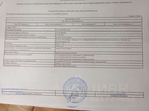 ПРОДАМ ЗЕМЕЛЬНЫЙ УЧАСТОК ИЖС 15 СОТОК . ПРОДАМ участок ИЖС 15 соток у оз. Шира всего за 79 000 руб! Кад. 19:11:020201:513 Срочное предложение! Участок земли под ИЖС площадью 15 соток в популярном курортном районе Хакасии. Местоположение: Хакасия, Ширинский район, п. Колодезный, ул. Сидорова. Участок расположен между двумя легендарными озерами: до озера Шира* — 1,7 км, до озера Итколь — 2 км. Район с развитой инфраструктурой для туризма и отдыха. Цена: 79 000 рублей за весь участок Основные характеристики: Кадастровый номер:* 19:11:020201:513 Площадь:* 15 соток (1500 кв.м) Назначение: Для индивидуального жилищного строительства (ИЖС) Оформление:Собственность. Идеальное применение: 1)Строительство частного дома для ПМЖ или летнего отдыха. 2)Создание базы отдыха, глэмпинга, турбазы или нескольких гостевых домиков. 3) Инвестиция в землю в перспективном туристическом направлении. Первое фото визуализация одного из вариантов вашего дома . Участок куплен в аренду по договору с местной администрацией. Срок аренды — 20 лет(до 2045г) , я — арендатор. Предлагается переуступка аренды (аренда 2 757 рублей в месяц), с возможностью перевода в собственность - за 50% от кадастра - что составит 50 460 руб . В общей сложности вы экономите до 65% от рыночной цены участка! На сегодня мной реализовано более 15 проектов через аренду - на сегодня это самый выгодный путь получения зем участка . Переуступка оформляется и регистрируется в Росреестре. Безопасность сделки гарантирую. Так как все переоформление происходит через администрацию , что исключает любых тайных собственников и дает дополнительную гарантию безопасности, вы приобретаете полностью проверенный и чистый участок без обременений/скрытых собственников/ залогов и прочих неприятных моментов . Всю сделку проводим через (Сбербанк) Все документы готов к сделки , один собственник. Успевайте забрать этот кусочек сказки, это лучшее предложение в данном регионе. Звоните/пишите - расскажу все подробности.