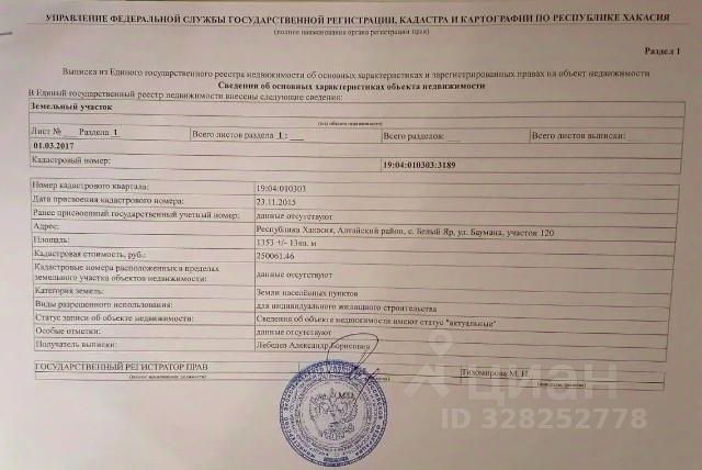 Предлагается к продаже земельный участок, расположенный по адресу: посёлок Белый Яр, улица Толстого, 27. Участок находится в живописном и экологически чистом районе, что делает его привлекательным для строительства загородного дома или коттеджа. Общая площадь участка составляет 12 соток . Категория земель: земли населенных пунктов. Разрешенное использование: для индивидуального жилищного строительства (ИЖС) Обеспечен круглогодичный подъезд. В непосредственной близости от участка находятся объекты социальной инфраструктуры: магазины, школа, детский сад, остановка общественного транспорта. Расстояние до центра Абакана составляет 7 км Участок оформлен в собственность. Документы готовы к сделке. Возможен разумный торг. По всем вопросам и для организации просмотра участка обращайтесь по телефону