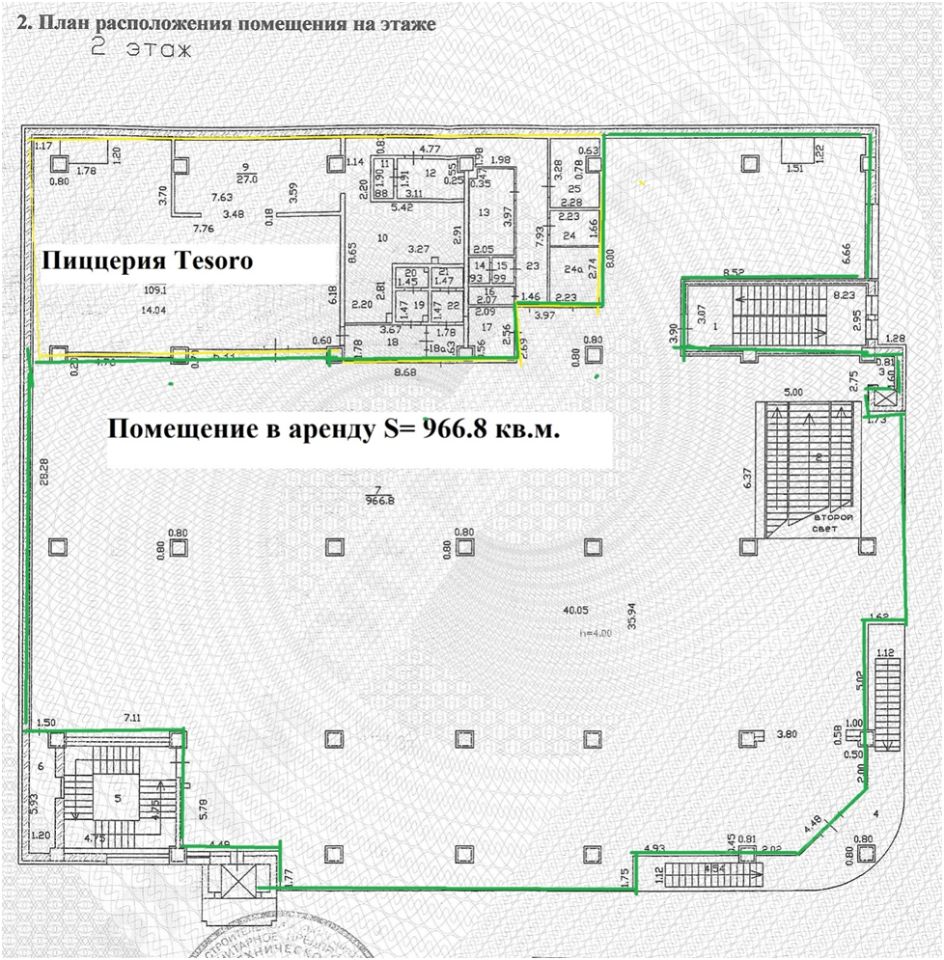 Помещение 2 этажа общей площадью 1108,7 кв.м. Площадь предлагаемая в аренду 25 кв.м., 36 кв.м., 966.8 кв.м. удачная свободная планировка позволяет создать персональный дизайн пространства. вход на второй этаж осуществляется по лестнице и по эскалатору. На первом этаже размещен крупный региональный супермаркет "Командор", на втором этаже пиццерия "Tesoro". Срок аренды составляет 11 месяцев с пролонгацией. Стоимость арендной платы согласуется индивидуально.