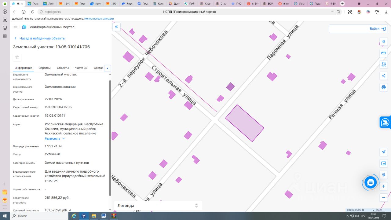 Земельный участок с кадастровым номером 19:05:010141:706 площадь 1991 по адресу Российская Федерация, Республика Хакасия, муниципальный район Аскизский, сельское поселение Аскизский сельсовет, село Аскиз, улица Паромная, земельный участок 38