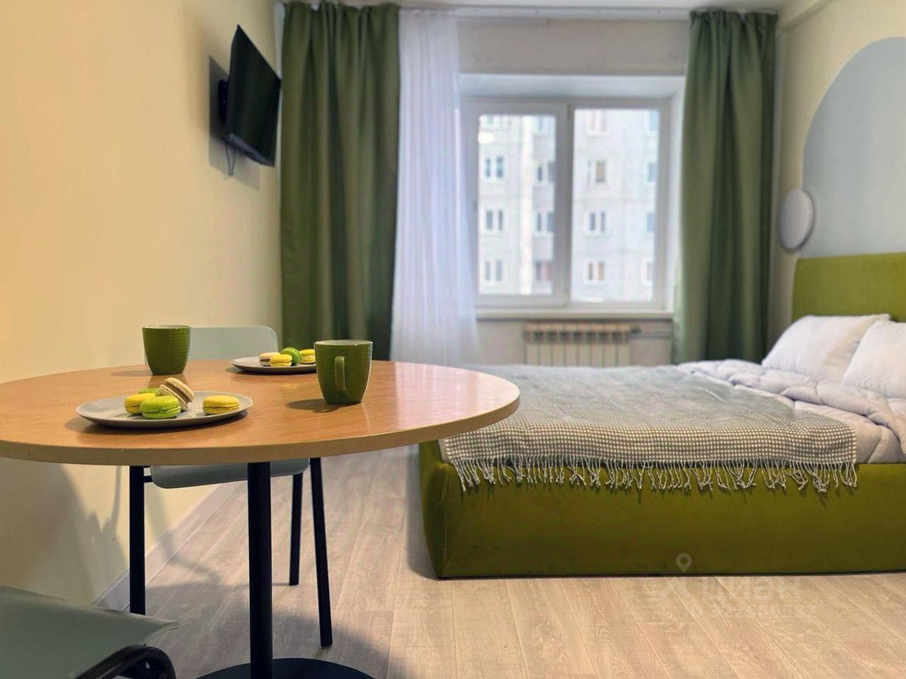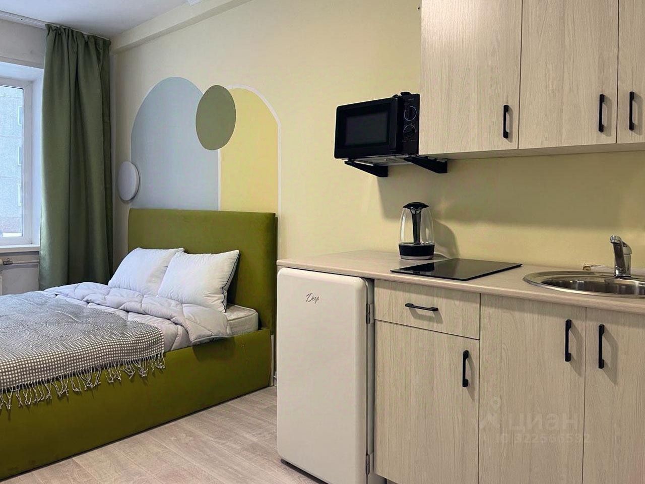 В студии предоставляется: постельное белье, банные полотенца, средства гигиены, одноразовые тапочки. В комнате двухместная кровать со спальным местом 160*200 с ортопедическим основанием и матрасом. Телевизор с онлайн кинотеатром, Wi-Fi. На кухне вся необходимая бытовая техника и посуда, чай.