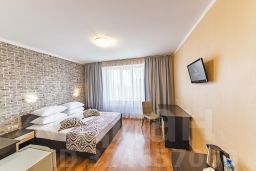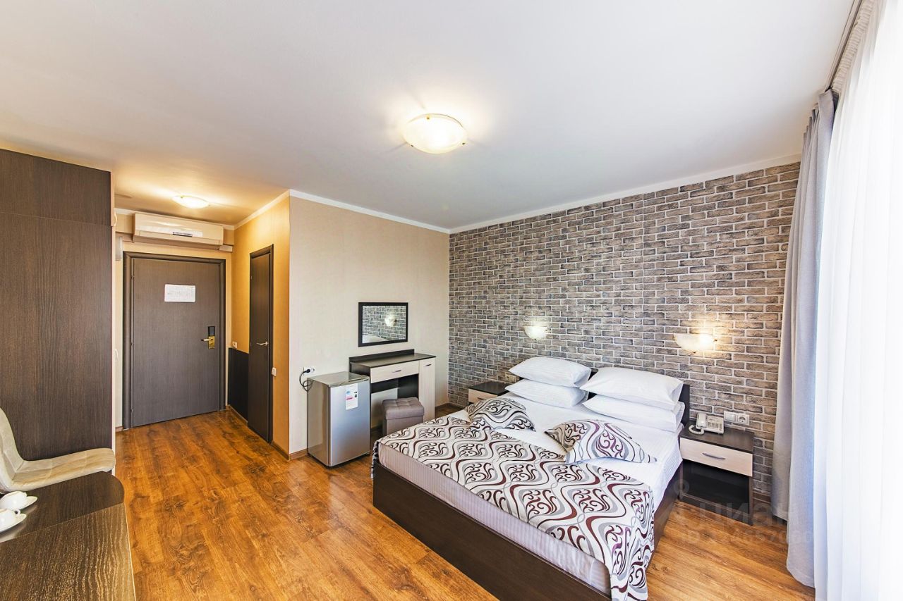 Номер состоит из одной жилой комнаты с двуспальной кроватью, санузел с душевой кабиной.