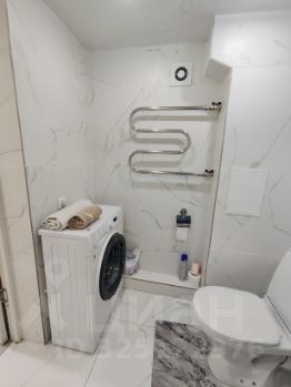 в ванной стиральная машинка, свежие полотенца, средства гигиены;