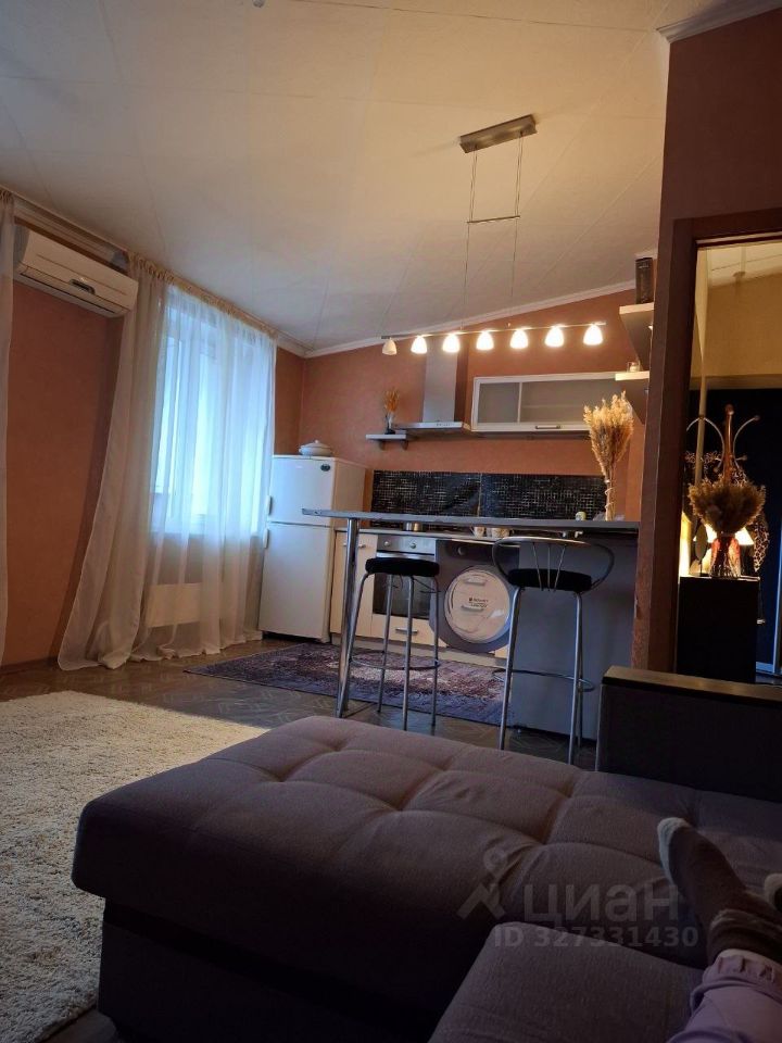 Внутри квартиры вас ждет современная кухня с необходимой мебелью и техникой, включая холодильник и стиральную машину. В гостиной предусмотрено место для отдыха с телевизором. Окна выходят как во двор, так и на улицу, поэтому в квартире всегда светло. Санузел совмещенный, оборудован ванной.