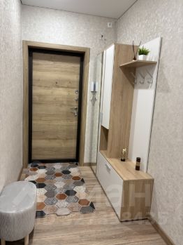 *просторная прихожая с обувницей; мягким пуфиком и вместительным шкафом с зеркалом в полный рост