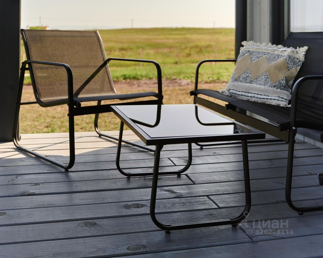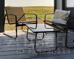 Терраса с видом на озеро оборудована удобной мебелью.