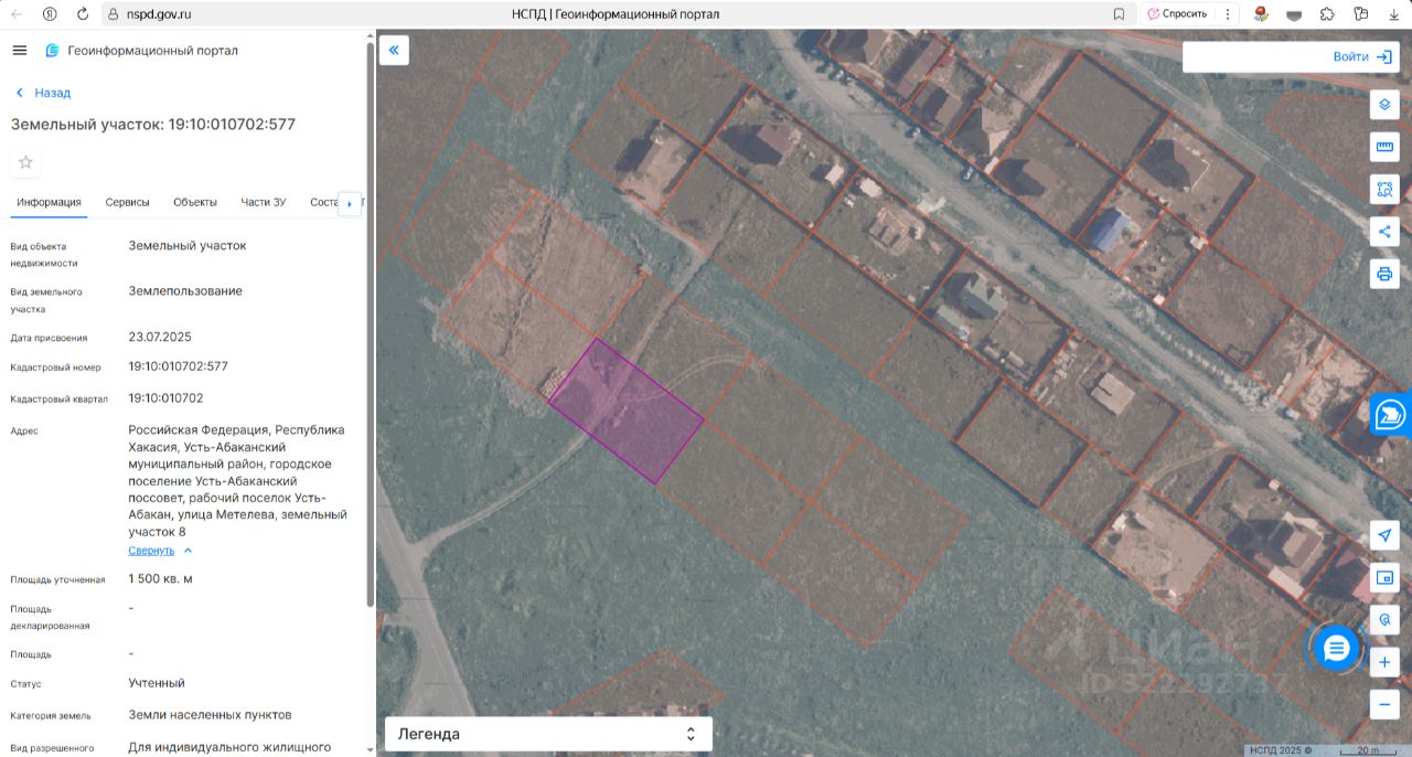 Продажа в собственность земельного участка, относящегося к категории земель населенных пунктов, расположенного по адресу: Российская Федерация, Республика Хакасия, Усть-Абаканский муниципальный район, городское поселение Усть-Абаканский поссовет, рабочий поселок Усть-Абакан, улица Метелева, земельный участок 8, с видом разрешенного использования: для индивидуального жилищного строительства.