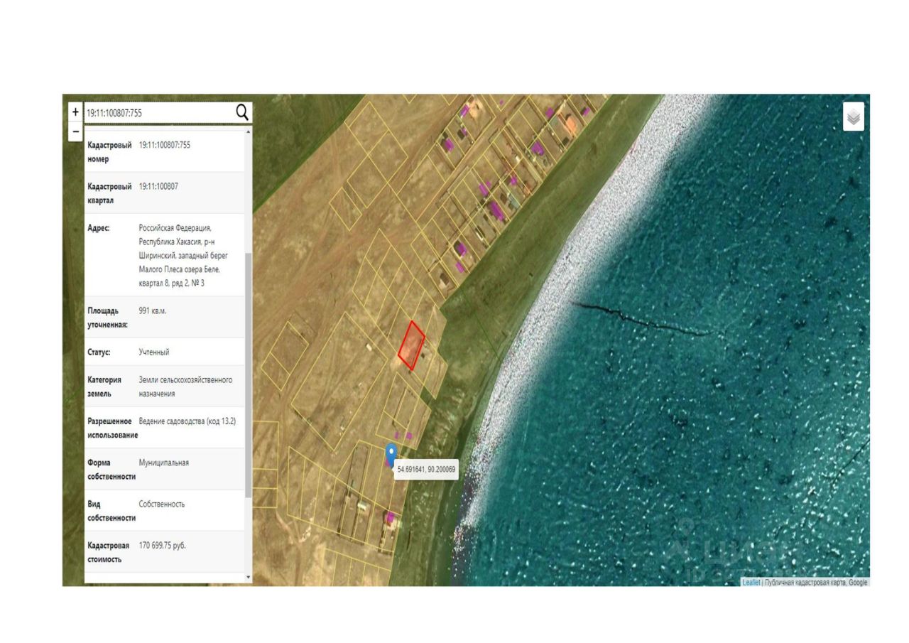 Право продажи земельного участка, находящегося в муниципальной собственности, расположенного по адресу: Российская Федерация, Республика Хакасия, р-н Ширинский, западный берег Малого Плеса озера Беле, квартал 8, ряд 2, 3