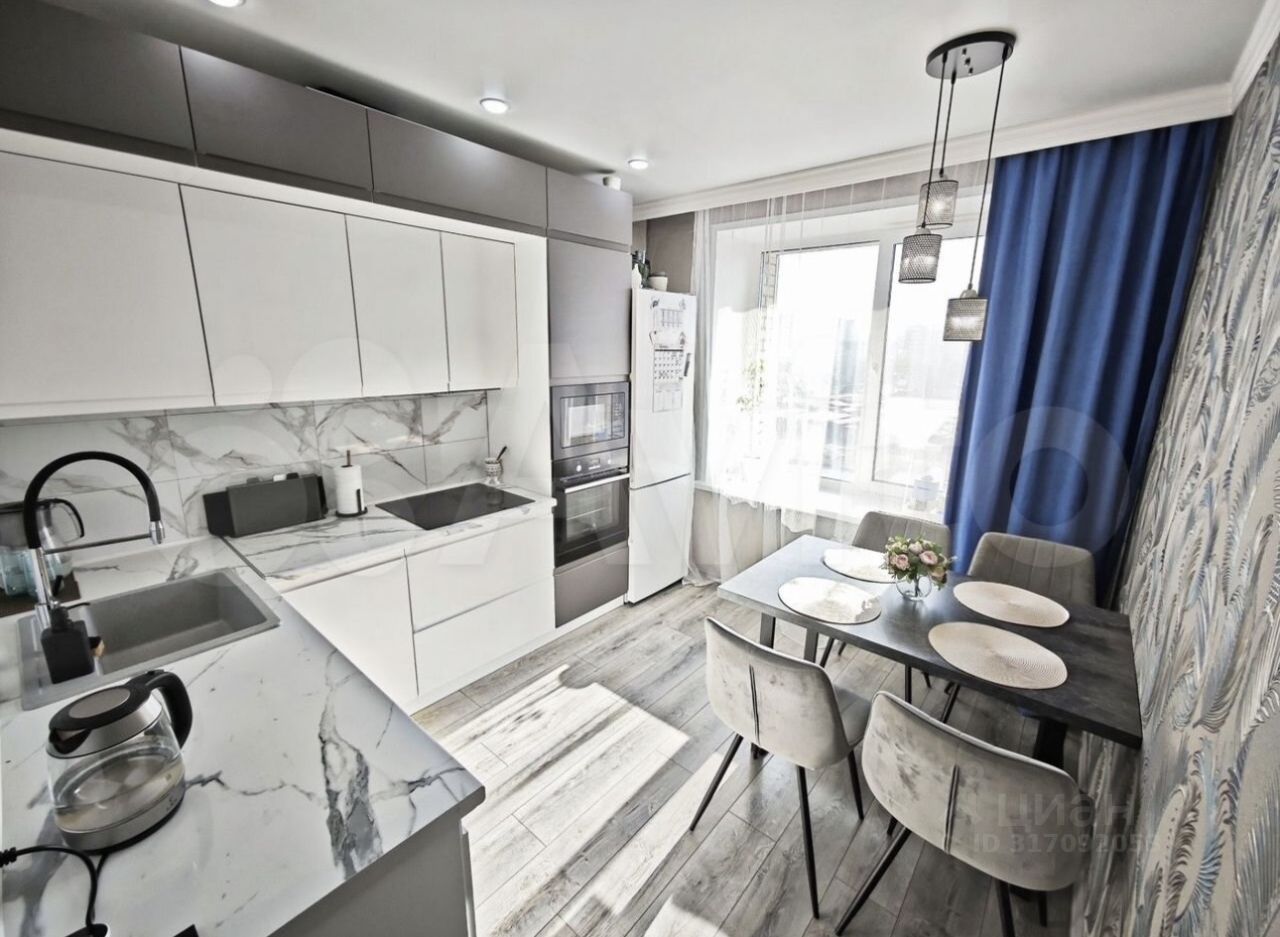 -Вместительная кухня с новым кухонным гарнитуром с регулируемой подсветкой по всей рабочей зоне, крутая и очень удобная в использовании каменная раковина, мощная встроенная вытяжка.