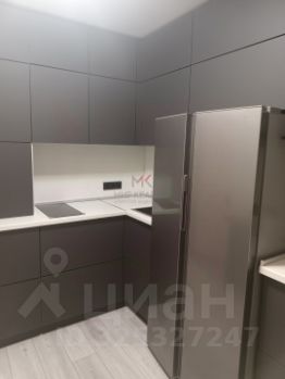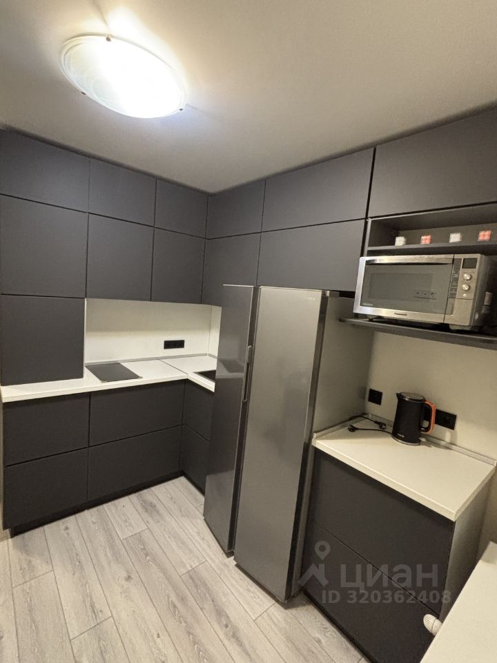 На кухне — дизайнерский гарнитур с дорогими матовыми фасадами (цвет графит) .
