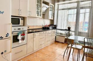 большая кухня, с кухонным гарнитуром и встроенной техникой для комфортного проживания.