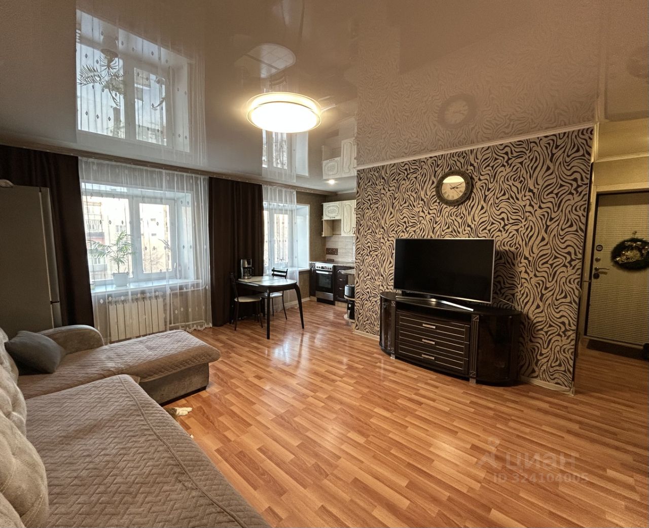 Продается уютная трехкомнатная квартира площадью 58,4 кв. м на 4 этаже пятиэтажного кирпичного дома, построенного в 1969 году. Жилая площадь составляет 45,1 кв. м, кухня — 5,8 кв. м. Высота потолков — 2,3 метра. Из окон открывается вид как на улицу, так и во двор, что обеспечивает хорошее естественное освещение в течение всего дня.