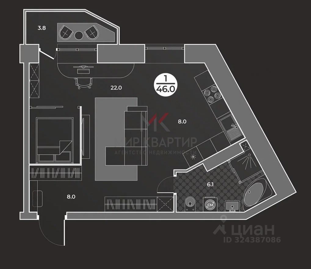 Общая площадь: 46 м²