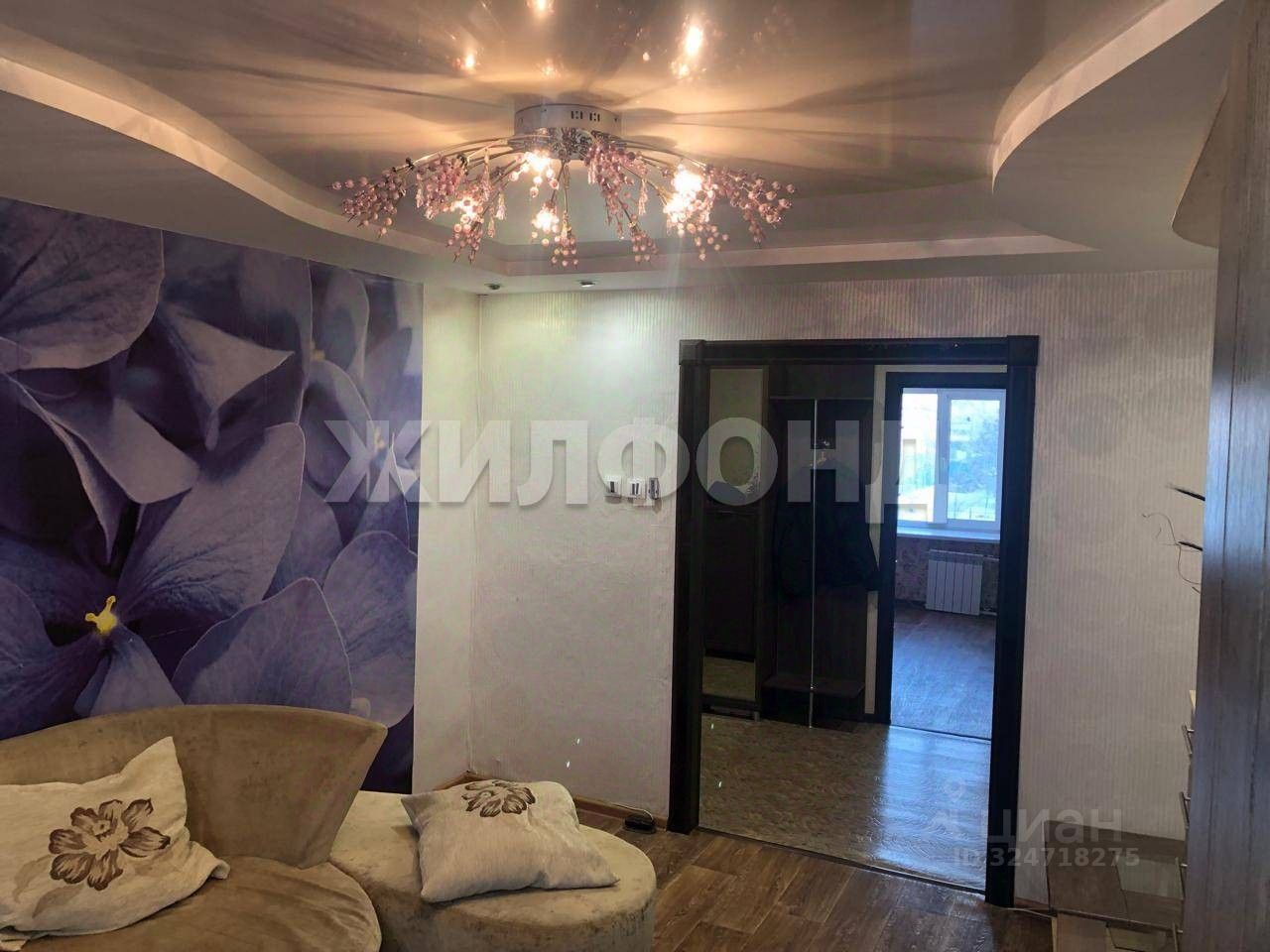 Косметический ремонт, линолеум, обои, потолок натяжной с точечными светильниками и люстрами.