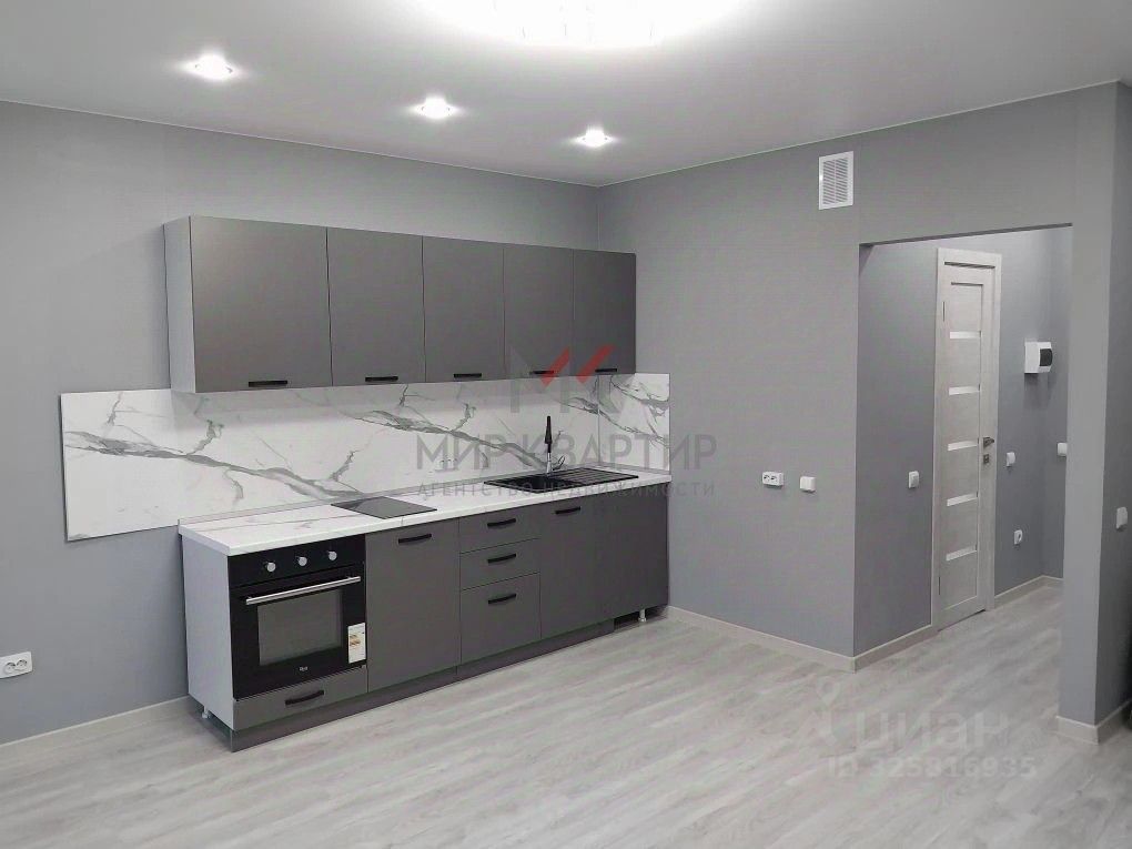Кухня-мечта: Свежий гарнитур, блестящая варочная панель и духовой шкаф ждут ваших кулинарных экспериментов.