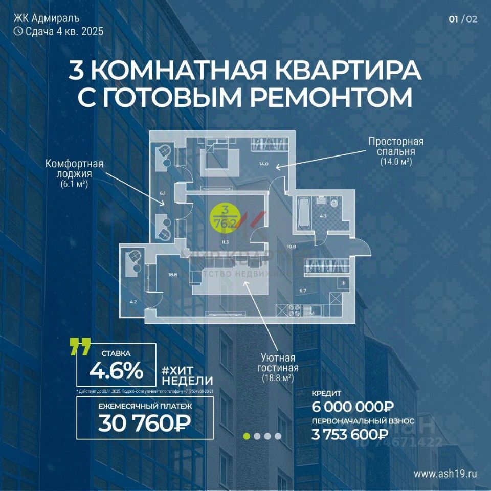 Арт. 126883351 Покупай квартиру за 30. 760 рублей!