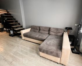 Новым хозяевам останется диван, кухня с плитой, шкаф и стиральная машина.
