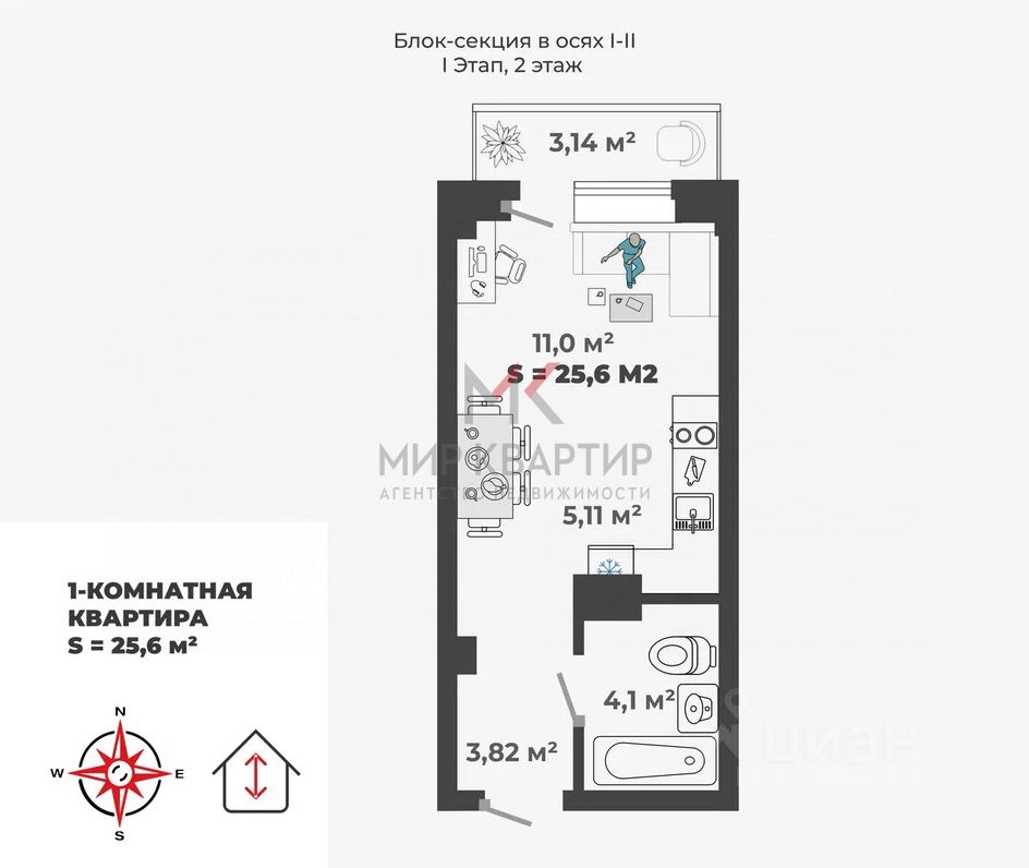 Общая площадь: 25. 7