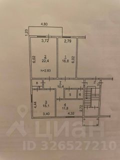 Высота потолков: 2,83 м