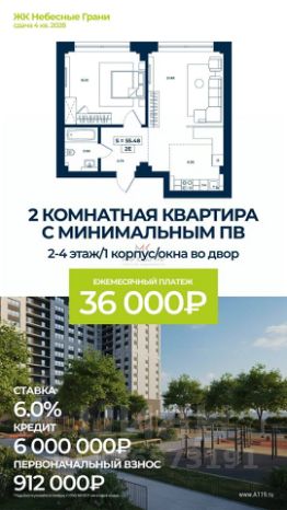 Ежемесячный платеж 36 000 !!! Это дешевле, чем снимать квартиру!!!