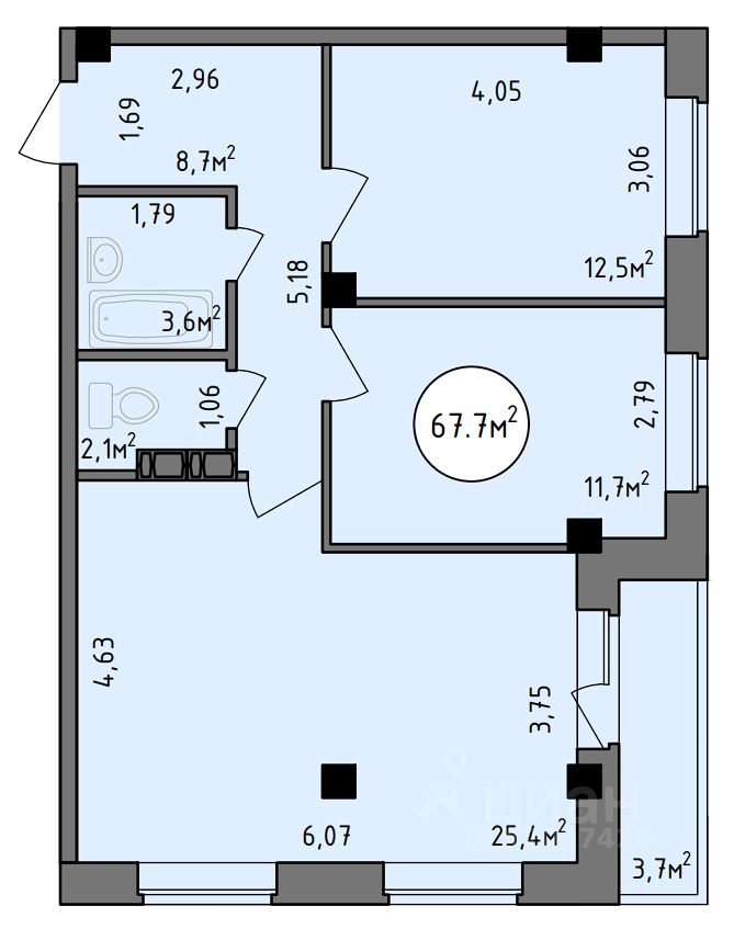 67,7 м²
