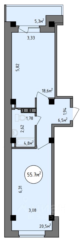 55,7 м²