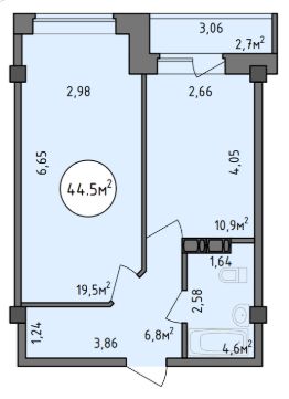 Общая площадь44,5 м²