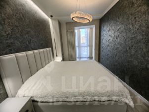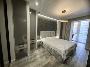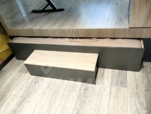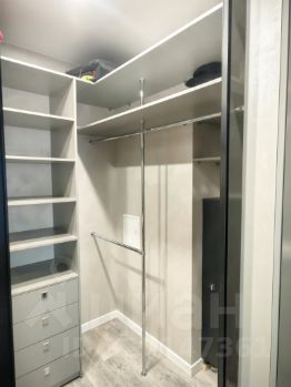 В спальнной комнате кровать с подъёмным механизмом и просторной гардеробной.