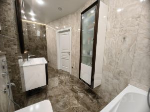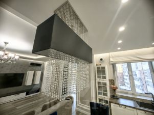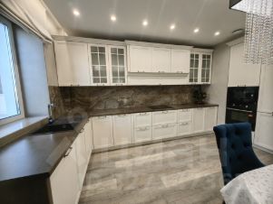 Выполнена в современном дизайнерском стиле . Кухня имеет фасад натурального дерева, премиум доводчики, встроенную технику , посудомоечную машину , холодильника , духового шкафа , микроволновую печь. На кухне врезан рекуператор воздуха .В квартире не бывает холодно , радиаторы отопления установлены с запасом и открыты на 10% . Также установлена по квартире вытяжная вентиляция с анемостатами. Полы с подогревом на лоджии и в ванной комнате. Имеется кондиционер.