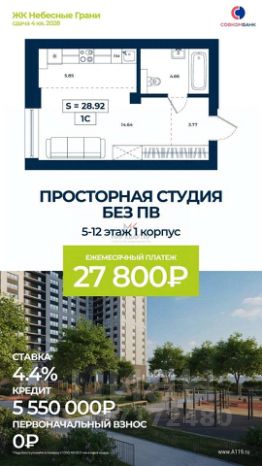 Арт. 131806188 Квартира без первоначального взноса ПОД 4,4%
