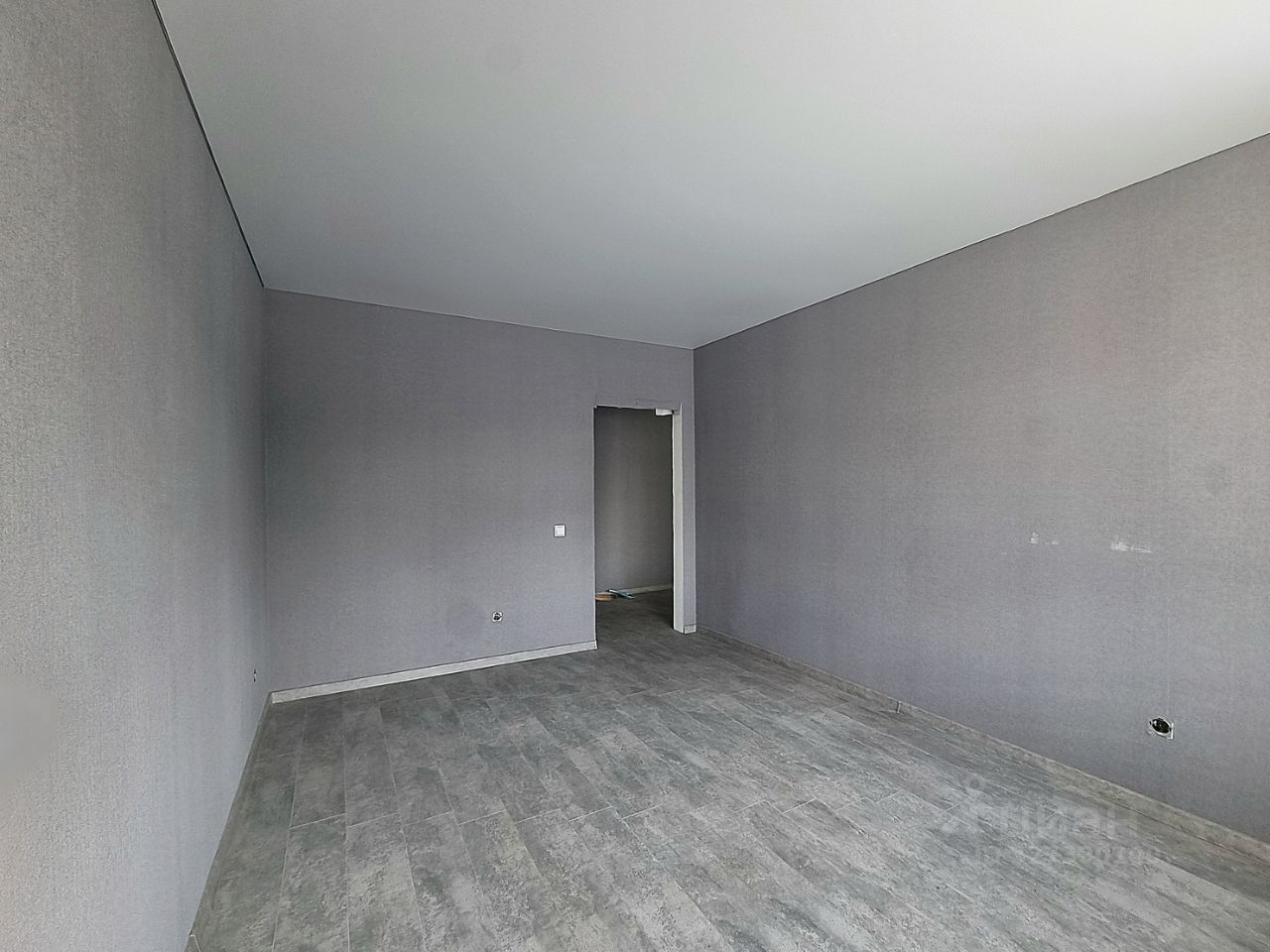 На полу ламинат, обои горячего тиснения, плинтуса.