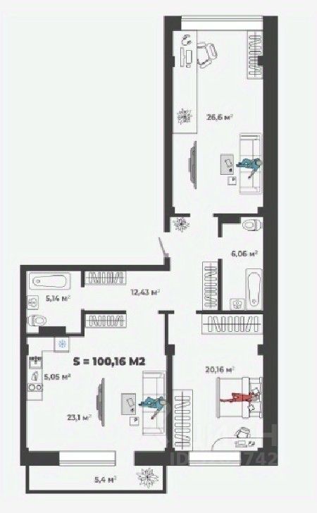 Продаётся 3-комнатная квартира в строящемся доме (1,2 этап), срок сдачи: II-кв. 2026, общей площадью 100.16 кв.м., на 1 этаже. Новый жилой комплекс "Новый Бульвар" от застройщика "СЗ АльфаГрупп" расположен по адресу: г. Абакан, улица Генерала Тихонова.