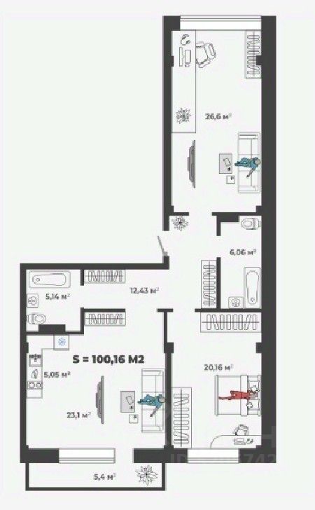 Продаётся 3-комнатная квартира в строящемся доме (1,2 этап), срок сдачи: II-кв. 2026, общей площадью 100.16 кв.м., на 2 этаже. Новый жилой комплекс "Новый Бульвар" от застройщика "СЗ АльфаГрупп" расположен по адресу: г. Абакан, улица Генерала Тихонова.