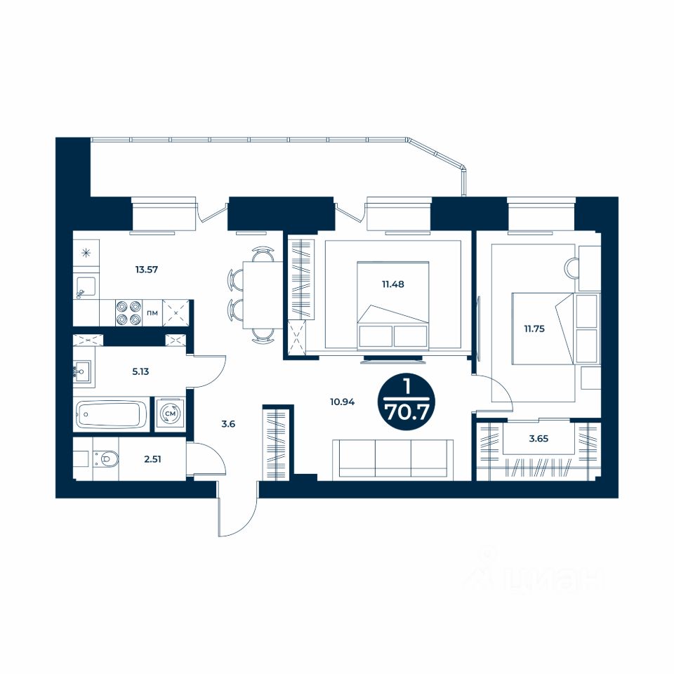 70,7 м²