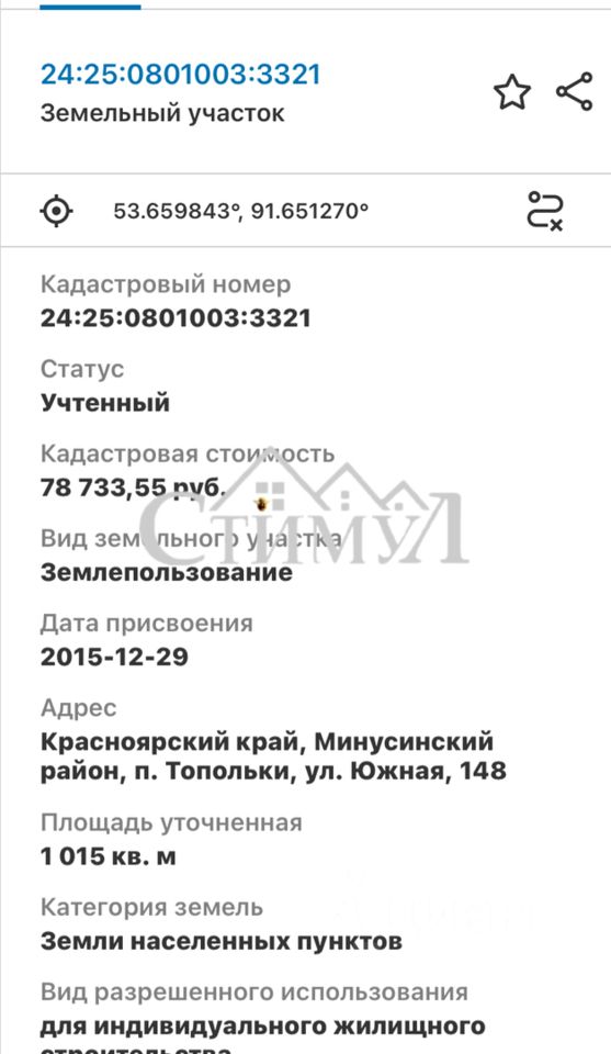 Кадастровый номер участка 24:25:0801003:*** указал продавец
