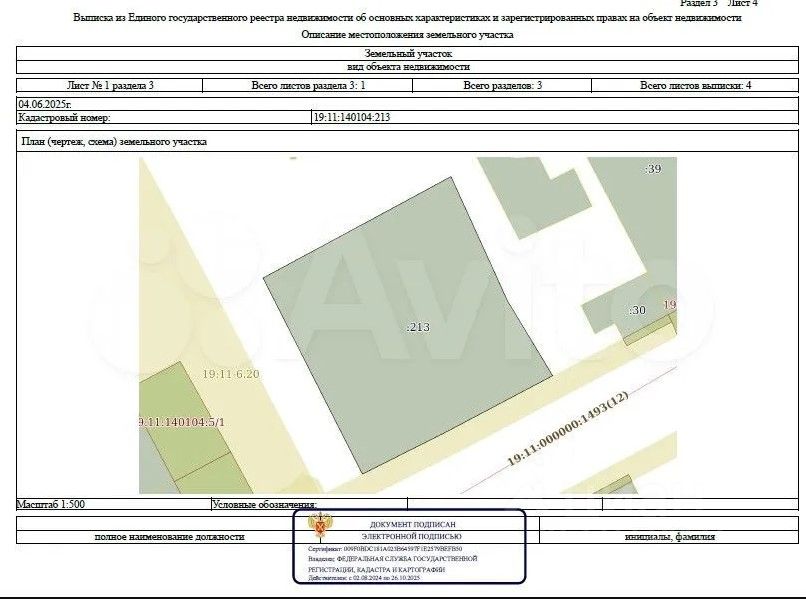 - Кадастровый номер 19:11:140104:213