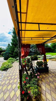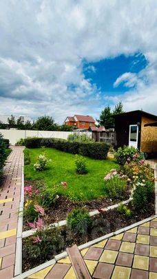 На территории участка имеется беседка, гостевой дом с баней, из оцилиндрованного бруса на 20. В доме есть кухня, комната отдыха, зона барбекю , сан.узел, душ . Теплый водяной пол, на полу керамогранит, большие окна.