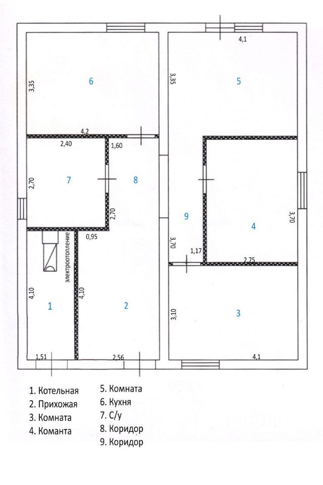 Классная традиционная планировка дома: 3 изолированные комнаты +отдельно кухня, санузел совмещен,просторный коридор с выделенным местом под большой шкаф в потолок.