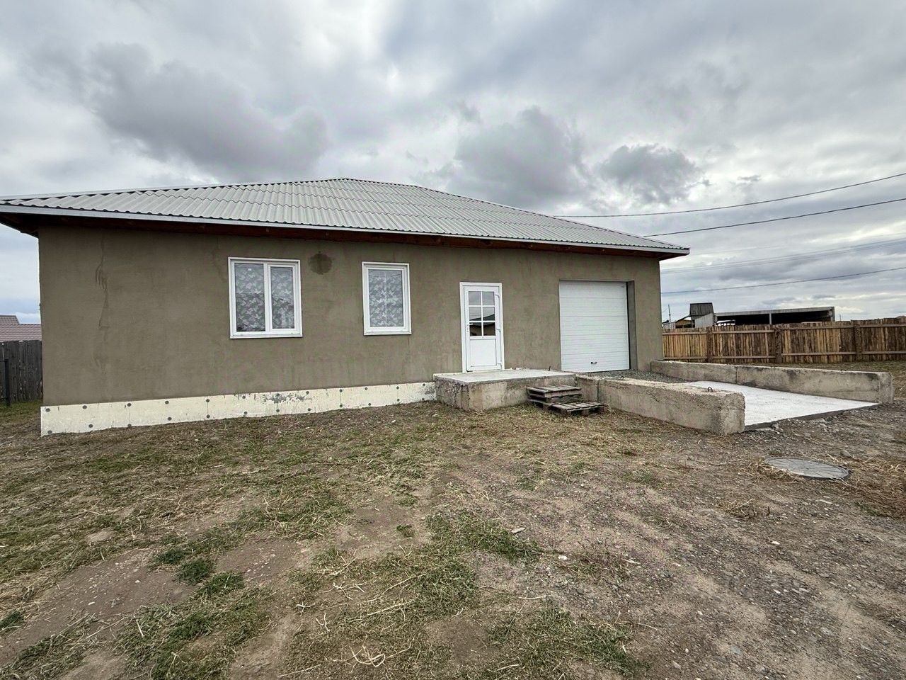 Снаружи дом обшит и подготовлен к декоративной штукатурке.