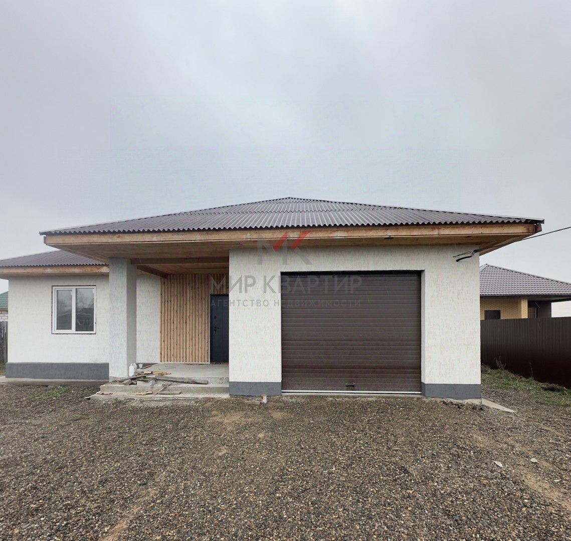 Дом имеется 4 комнаты: кухня+гостинная(+выход на террасу), 3 спальни, сун.узел, гараж на 1 машину