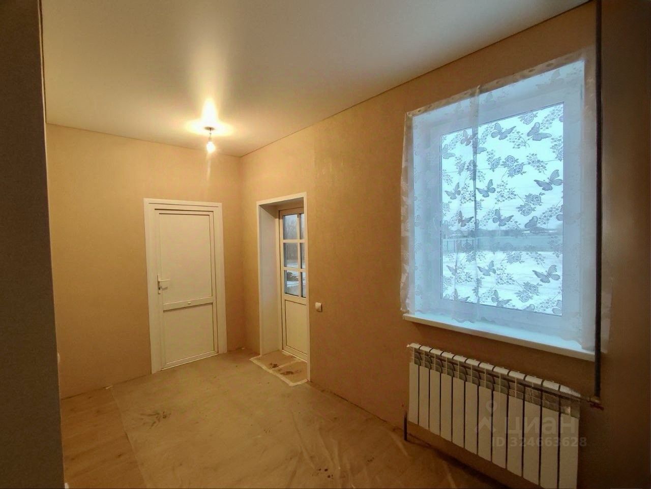 В гостинной установлено окно с дверью для выхода на будущую террасу.