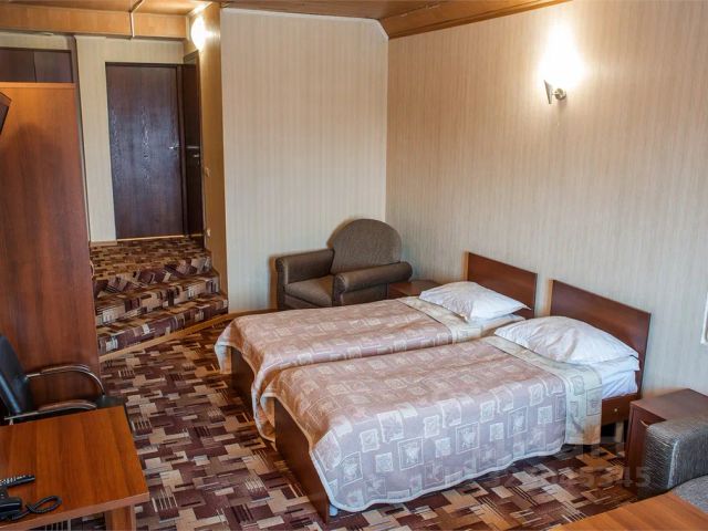 Гостиница "Енисей" расположилась в самом центре города Саяногорска, в шаговой доступности от которой, находятся: автовокзал, городской рынок, сквер им. В.В. Стриго, автозаправка, почта, а из окон гостиницы можно увидеть живописный берег реки Енисей, расположившейся у подножья Саянских гор. В шаговой доступности находятся магазины, городской рынок, автозаправка, автосервис. Расстояние от мини-гостиницы "Отель Енисей" до международного аэропорта Абакана составляет 72 км. Номерной фонд гостиницы состоит из комфортабельных номеров различных категорий: от эконом-вариантов до бизнес-класса. Классический дизайн позволит отдохнуть в спокойствии и умиротворении. Номера оснащены системой противопожарной безопасности. Все номера оснащены абсолютно новой современной мебелью, прикроватными тумбочками, шкафом, светильниками, телевизором, ванной комнатой (душевой кабиной), ванными принадлежностями. На территории гостиницы предоставляется бесплатная парковка и работает бесплатный Wi-Fi. Ежедневно в гостинице накрывают континентальный завтрак. По запросу завтрак можно подать в номер. Комфортный номер с большой кроватью, укомплектован мебелью, есть телевизор с подключением к кабельному ТВ и большим количеством каналов в хорошем качестве, кондиционером, феном. В номере для гостей чайный набор с посудой, сахаром, чаем и электрическим чайником. Для гостей предлагаются халаты, комплект белоснежных полотенец, тапочки, набор косметических средств. Все самое нужное для полноценного отдыха.