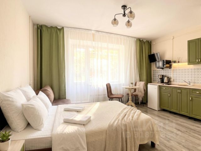 Уютная квартира-студия посуточно в Абакане. Район Арбан, новый дом, очень развитая инфраструктура, остановка общественного транспорта около дома. Парковка автотранспорта. Рядом множество кафе, ресторанов, супермаркеты Аллея, Командор, Пятерочка, Спортмастер, кинотеатр "Доминион" и другое. Аэропорт Абакан, ЖД вокзал и автовокзал в пределах 10 минут на такси. Чистота и порядок, двуспальная кровать 140*200 см + кресло-кровать, кондиционер. Фото реальные. В стоимость входит: - индукционная плита, СВЧ, холодильник и полный набор посуды; - телевизор+ интернет - водонагреватель, стиральная машинка, гладильная доска, утюг, фен; - чистый комплект постельного белья и полотенец; - средства гигиены ( шампунь, гель д/душа, жидкое мыло, одноразовые зубные щетки+ паста Доплата за доп.место 700 руб. Курить запрещено! Заезд с 14.00 до 22.00 выезд до 12.00. Отчетные документы предоставляются в виде чека из приложения Мой налог от самозанятого арендодателя Будем Вам рады!